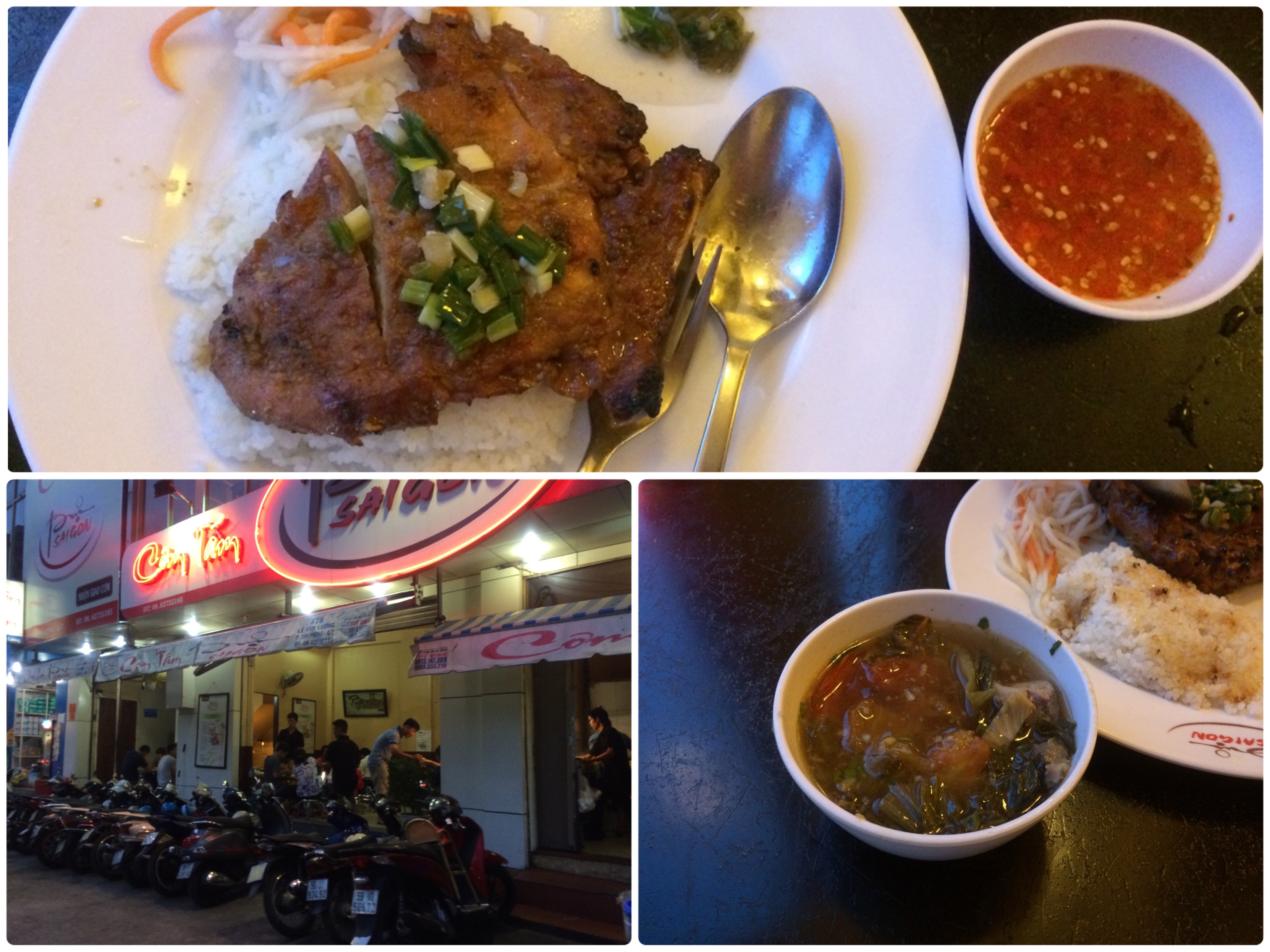 에밀리와 마트구경을 마치고 다시 셔틀버스를 타기전 마트 건너편에 유명한 껌승집이있다고 해서 가보기로 했다. 껌승집 앞에 놓인 오토바이의 수를 봐도 이곳에 많은 베트남인들이 다녀가는 집임을 알 수 있었다. 식당 안의 분위기는 조금 어두웠는데 우리는 이층에 자리를 잡고 기다렸다. 저녁노을이 지는 창밖의 풍경을 보았고, 오늘 하루를 되돌아보며 에밀이와 이야기를 나누다 보니 음식이 금방 나왔다. 껌승은 우리나라의 돼지갈비와 비슷한데 불맛도 살아있고 맛있었다. 한국인 입맛에도 딱인 로컬음식이랄까? 그런데 양이 매우 적었다. 이것이 진정 1인분인가? 라는 생각이 들 정도인데 베트남인들은 모두 소식하는 듯 하다. 어차피 셔틀도 타야하고 시간이 많지 않아서 더 시키지 않고 맛있게 먹었다. 다음번에 이집에 가게 된다면 꼭 2인분 시키리라!