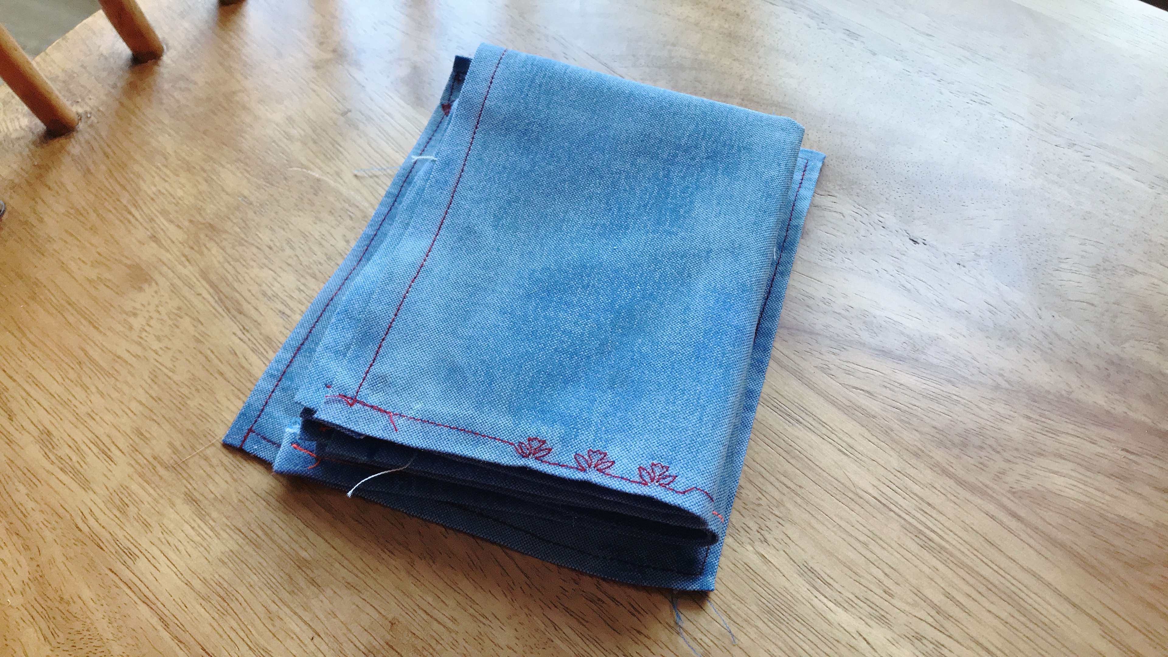 2. 자른 부분이 올이 나가지 않도록 핑킹가위를 쓰거나 아님 박음질을 해준다.