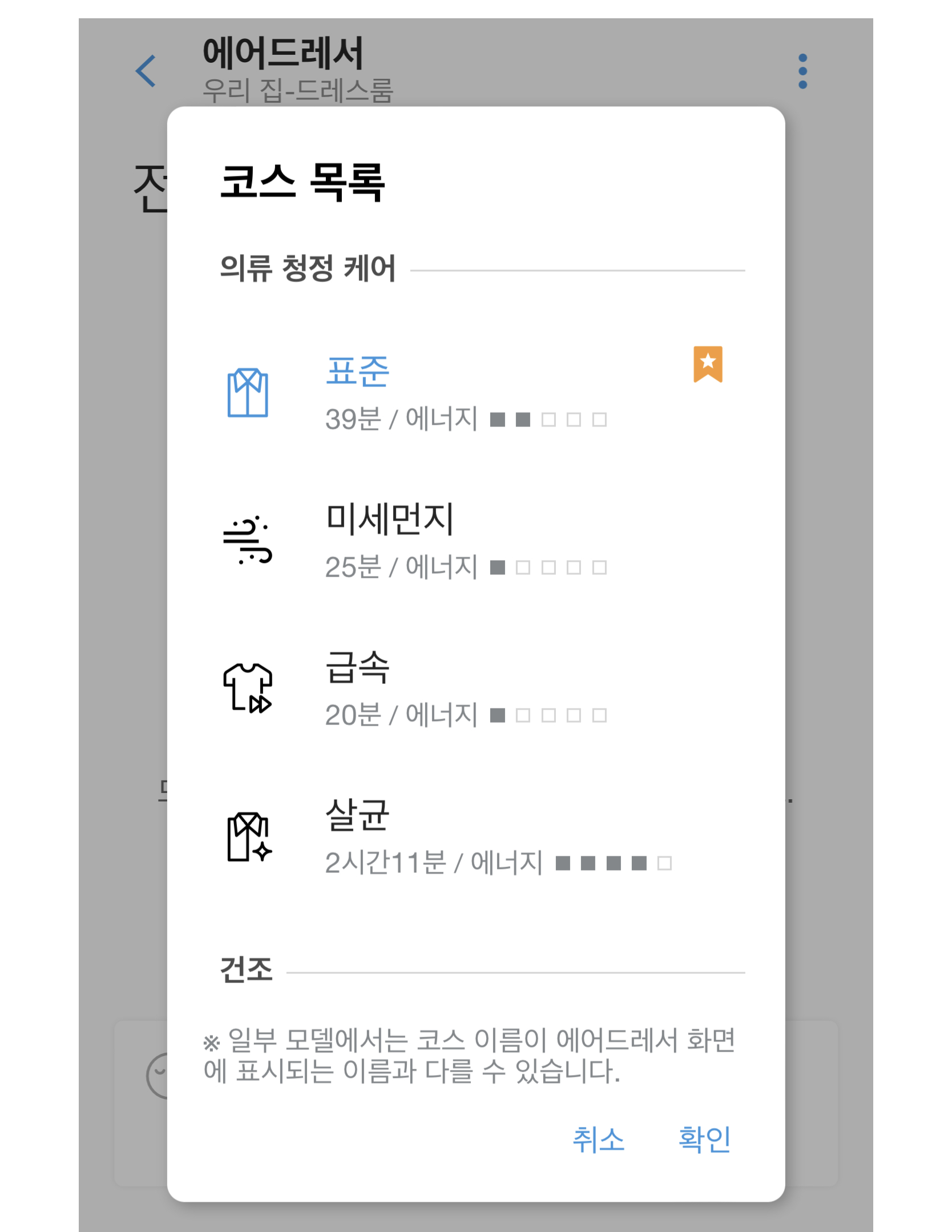 당신의 옷장에서 가장많은 지분을 갖은 옷의 종류는 무엇인가? 나는 옷을 많이 구매하는 타입이 아니라서 다양한 종류를 가지고 있지는 않다. 보통은 관리하기 편한 면옷이나 누구나 한벌쯤있는 겨울코트, 패딩, 청바지 그리고 니트 종류이다. 나처럼 평범한 옷장을 가진 사람도 있지만, 그렇지 않은 사람들도 있을 것이다. 예를 들자면 직업의 특성상 옷에 냄새가 항상 배인다던지, 교복이나 제복, 근무복이 따로 있는 사람들은 매일 세탁을 할 수 없다. 또 외투를 입는 계절이 오면 검은 패딩을 입는 사람들이 많은데 (코트도 맞찮가지이다.) 색이 어두운 외투 일수록 세탁을 자주 안하게 된다. 더러운지 잘 모르는 경우가 많기 때문이기도 하고 세탁소에 맡기면 나오는 비용도 만만치 않다. 위의 조건에 부합한다면 구매할 만한 이유가 생길 것이다. 아님 나처럼 관리가 용의한 옷만 있다면 이렇게 사용할 수도 있다. 에어드레서의 기능 중 내가 자주 사용했던 기능은 계절과 날씨마다 달랐는데, 미세먼지가 많은 날 중에 외투를 입고 나간 날에는 외투를 자주 빨래를 할 수 없어 ‘미세먼지’ 모드를 자주 사용했다. 여름처럼 습한날에는 ‘공간제습’ 모드를 자주 사용했다. 이 외에도 의류를 관리하는 기능으로 자주 사용한 기능은 ‘표준모드’이다. 이 모드들은 내가 주로 사용했고 관리할 의류가 많은 집사1은 이보다 더 다양하게 썼다. 에어드레서의 기능은 생각보다 다양한 의류를 관리할 수 있도록 되어 있고, 삼성의 가전들은 스마트폰에 ‘SmartThings’어플을 깔아 관리 할 수있다.